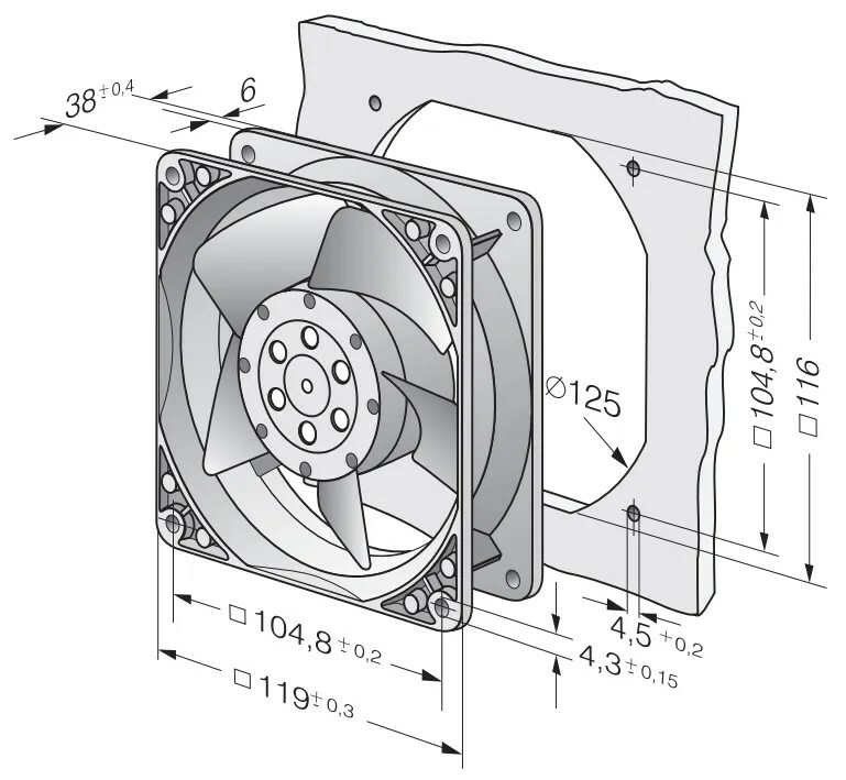 Компактная модель вентилятора Ebmpapst 4650 N имеет высокий класс производительности, низкий уровень шума, устойчив к повреждениям и нагрузкам. Корпус состоит из литьевого алюминия под высоким давлением, крыльчатки выполнены из стали, что обеспечивает высокую сопротивление изделия внешним негативным воздействиям.